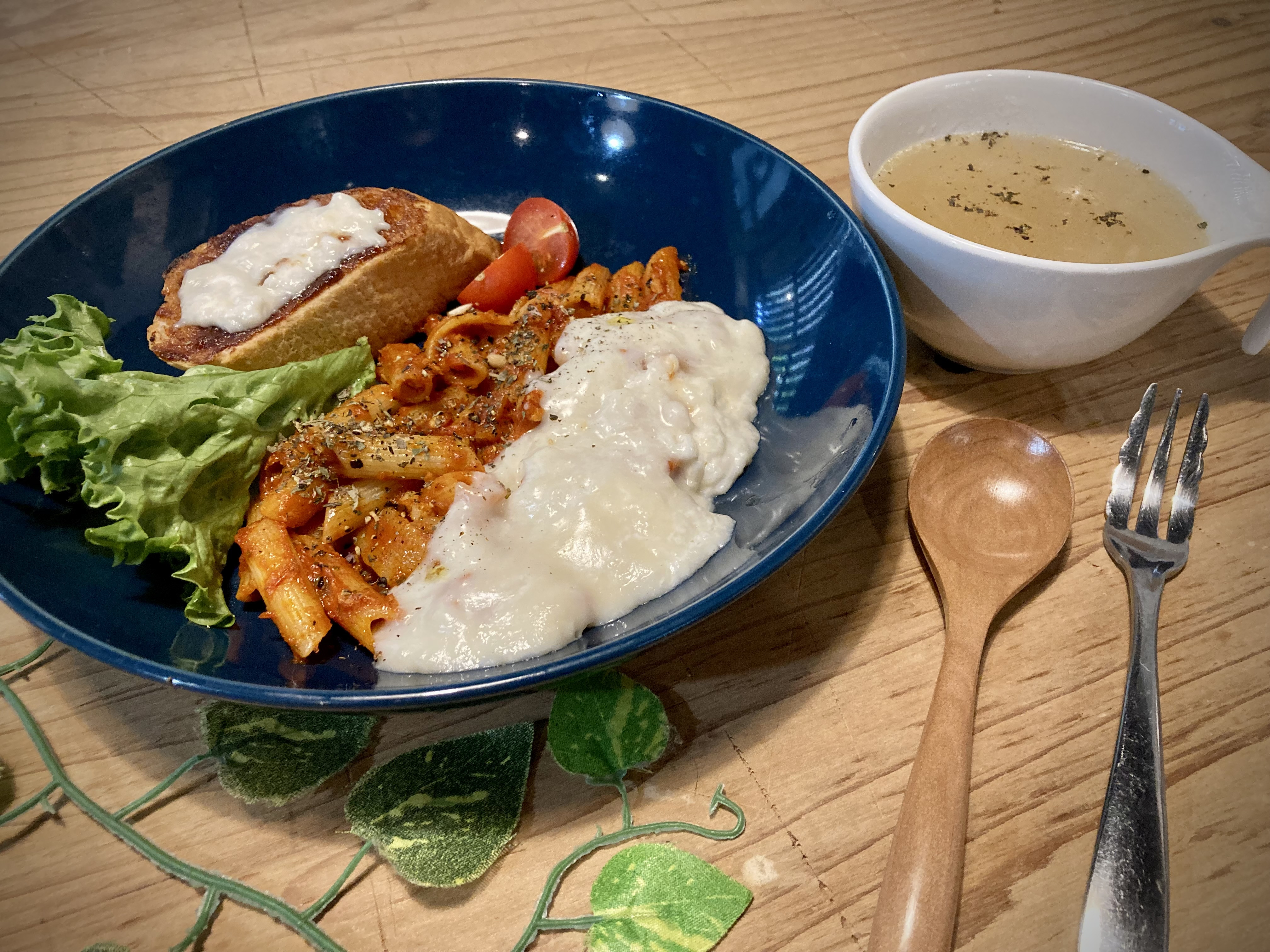 ◎ペンネアラビアータ。(チャツネチーズトースト/スープ付き)